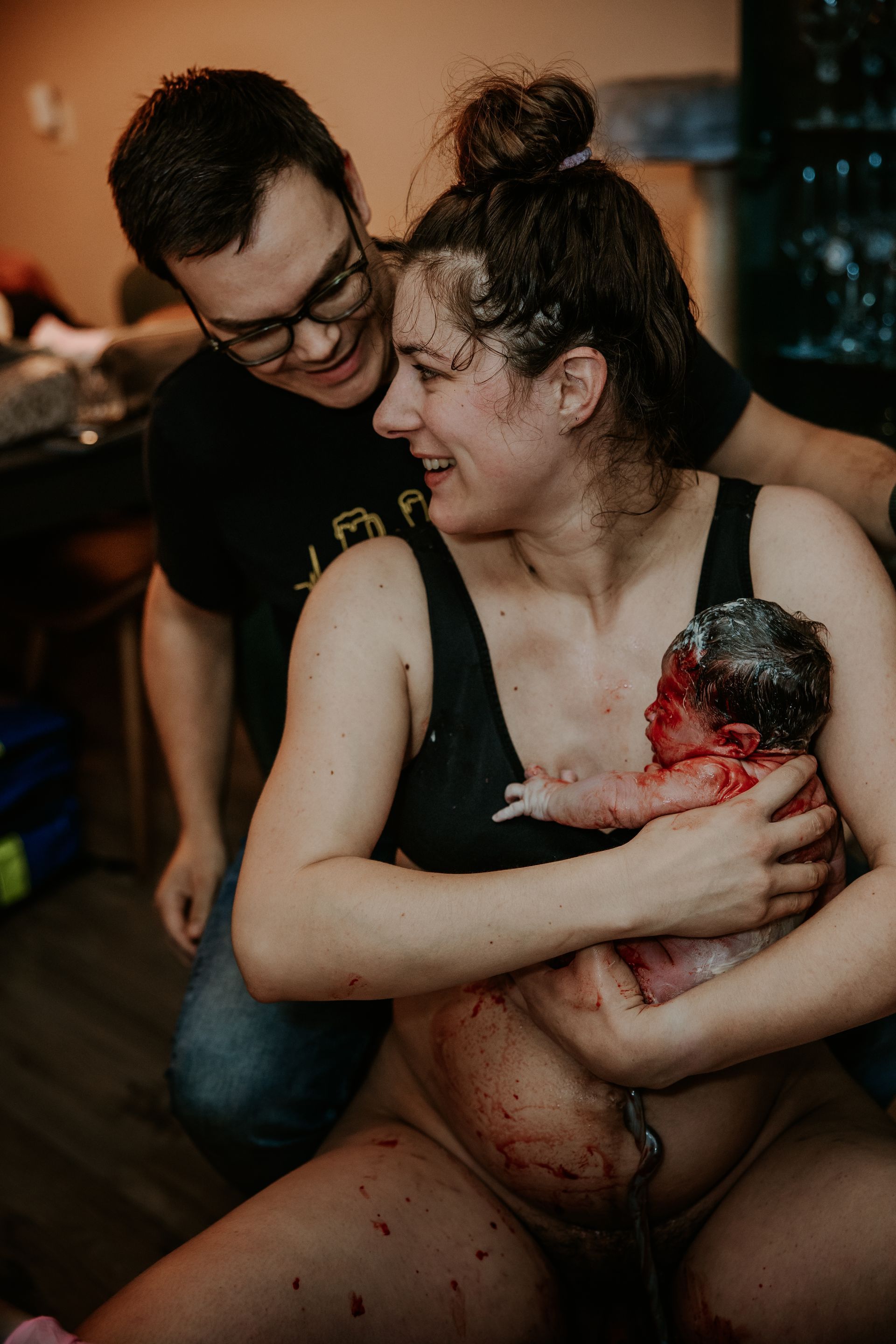 Na de geboorte blijf ik nog 2 uur om de eerste controles en de eerste momenten samen vast te leggen.